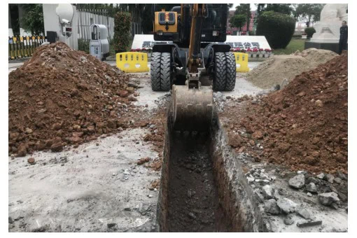 (3)Break up and excavate the pavement using pneumatic hammers or demolition equipment.