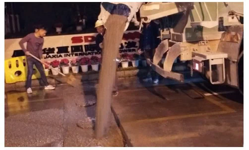 (Note: Continuously check levelness with a spirit level during pouring. After concrete placement, cordon off the construction site and allow at least 7 days for curing. Restore the road surface with concrete at least 20cm thick. The bottom of the drainage well also requires 10cm of concrete placement.)