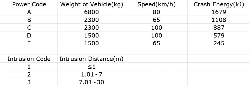 These levels are governed by ASTM and are used in conjunction with F2656. They indicate the speed of the striking vehicle (e.g., M30, M40, M50) and the penetration level (P1, P2, P3, etc.), which indicates the depth of penetration of the vehicle through the bollard.