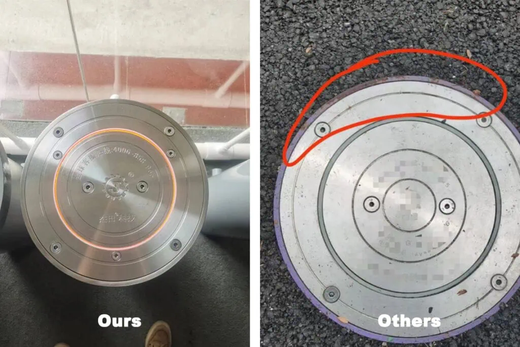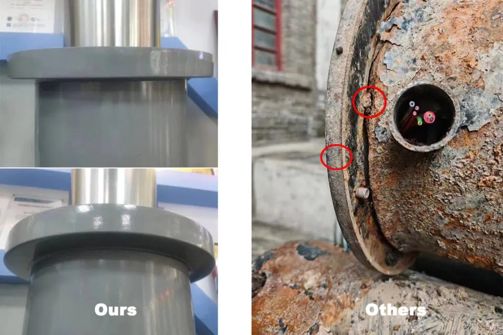 Other bollards of the flange plate using spot welding process, welding is incomplete, no anti-corrosion treatment, the edge of the guard and pre-buried barrels are easy to rust, not solid.